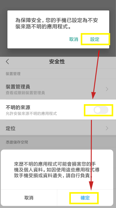 請按設定後在[不明的來源]